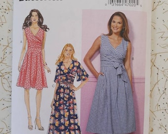 Amazon Com Butterick Ladies Easy Sewing Pattern 6446 Pleated Wrap Dresses With Sash Arts Crafts Sewing